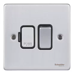 Schneider Electric Ultimate Low Profile 13A Switched Fused Spur Brushed Chrome with Black Inserts