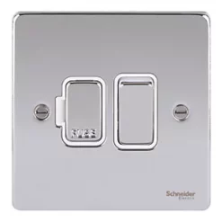 Schneider Electric Ultimate Low Profile 13A Switched Fused Spur Polished Chrome with White Inserts