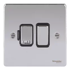 Schneider Electric Ultimate Low Profile 13A Switched Fused Spur Polished Chrome with Black Inserts