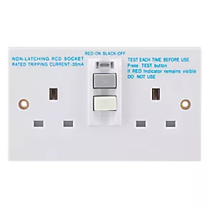 30mA. Active control socket with fail safe and electronic latch for re-setting after power loss or fault. Testing prior to each use recommended. For domestic use.