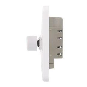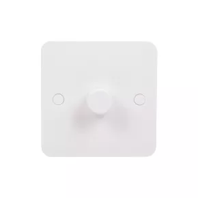 Combined mains and low voltage dimmer switch. Smooth, soft-curved plate profile. Push-on/off with rotary dimming. Supplied with screw cap covers for a sleek finish.