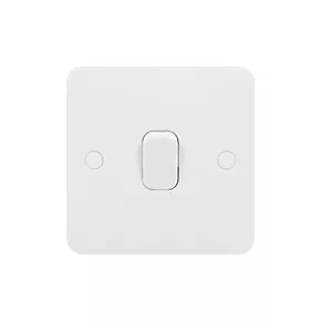 Intermediate switch for fluorescent and inductive loads. Soft-curved moulded profile. Durable anti-microbial urea construction. Ideally suited for new construction and refurbishment projects. Supplied with screw cap covers for a sleek finish.