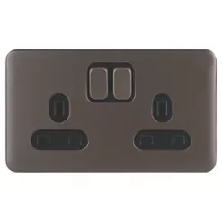 Schneider Electric Lisse Deco 13A 2-Gang SP Switched Plug Socket Mocha Bronze with Black Inserts
