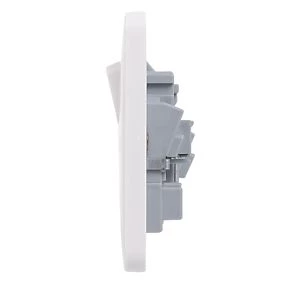 Single pole moulded plug socket. Durable, high quality urea construction with antimicrobial properties. Supplied with four screw cap covers for a sleek finish. Ideal for new construction and refurbishment projects.
