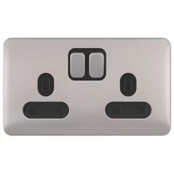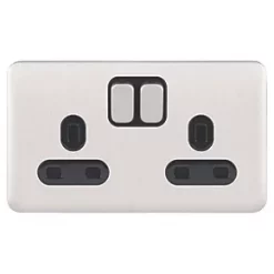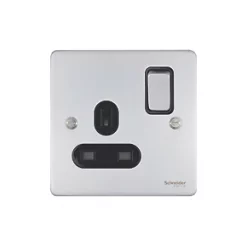 Schneider Electric Lisse Deco 13A 2-Gang DP Switched Plug Socket Polished Chrome with White Inserts