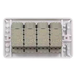 Combined mains and low voltage dimming functionality. Push on/off with rotary dimming. Durable, moulded anti-microbial urea construction. Supplied with screw cap covers for a sleek profile finish. For use with 1-10V lighting.