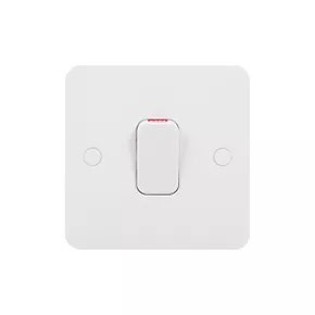 High current switch with a smooth, soft-curved plate profile. Supplied with screw cap covers for a sleek finish.
