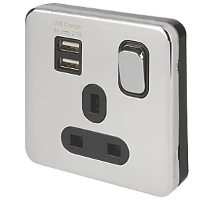 Be the first to review “Schneider Electric Lisse Deco 13A 1-Gang SP Switched Socket + 2.1A 2-Outlet Type A USB Charger Polished Chrome with Black Inserts” Cancel reply