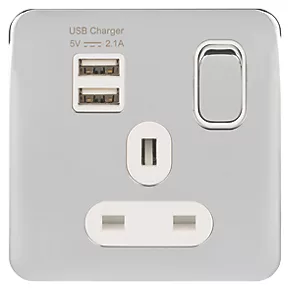 Be the first to review “Schneider Electric Lisse Deco 13A 1-Gang SP Switched Socket + 2.1A 2-Outlet Type A USB Charger Polished Chrome with White Inserts” Cancel reply