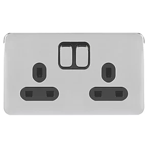 Be the first to review “Schneider Electric Lisse Deco 13A 2-Gang DP Switched Plug Socket Polished Chrome with Black Inserts” Cancel reply