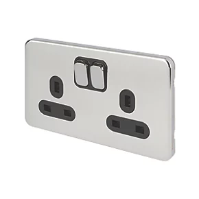Schneider Electric Lisse Deco 13A 2-Gang DP Switched Plug Socket Polished Chrome with White Inserts
