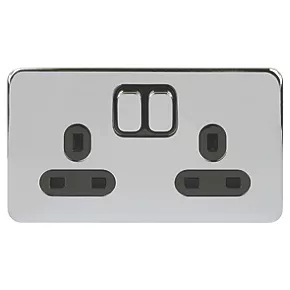 Be the first to review “Schneider Electric Lisse Deco 13A 2-Gang SP Switched Plug Socket Polished Chrome with Black Inserts” Cancel reply