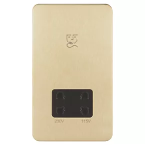 Be the first to review “Schneider Electric Lisse Deco 2-Gang Dual Voltage Shaver Socket 115 / 230V Satin Brass with Black Inserts” Cancel reply