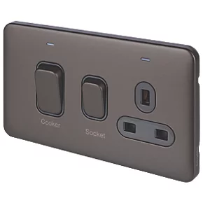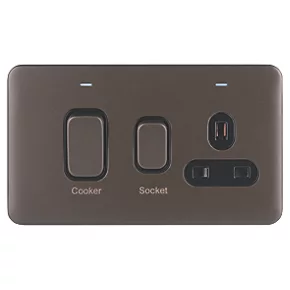 Be the first to review “Schneider Electric Lisse Deco 45A 2-Gang DP Cooker Switch & 13A DP Switched Socket Mocha Bronze with LED with Black Inserts” Cancel reply