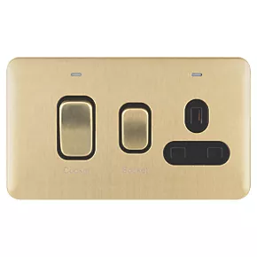 Be the first to review “Schneider Electric Lisse Deco 45A 2-Gang DP Cooker Switch & 13A DP Switched Socket Satin Brass with LED with Black Inserts” Cancel reply