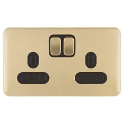 Schneider Electric Lisse Deco 13A 2-Gang DP Switched Plug Socket Satin Brass with Black Inserts