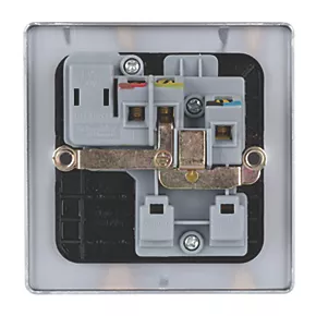 Low profile 1-gang switched socket with contemporary soft-curved edge and concealed fixings.