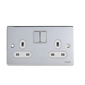Be the first to review “Schneider Electric Ultimate Low Profile 13A 2-Gang SP Switched Plug Socket Polished Chrome with White Inserts” Cancel reply