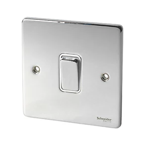 Be the first to review “Schneider Electric Ultimate Low Profile 16AX 1-Gang Intermediate Switch Polished Chrome with White Inserts” Cancel reply