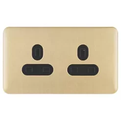 Schneider Electric Lisse Deco 13A 2-Gang Unswitched Plug Socket Satin Brass with Black Inserts