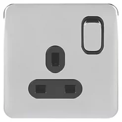 Schneider Electric Lisse Deco 13A 1-Gang SP Switched Plug Socket Polished Chrome with Black Inserts