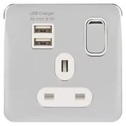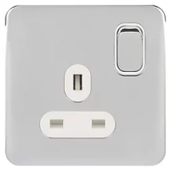 Schneider Electric Lisse Deco 13A 1-Gang SP Switched Plug Socket Polished Chrome with White Inserts