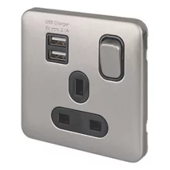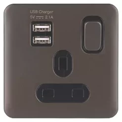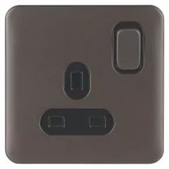 Schneider Electric Lisse Deco 13A 1-Gang SP Switched Plug Socket Mocha Bronze with Black Inserts