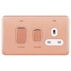 Schneider Electric Lisse Deco 45A 2-Gang DP Cooker Switch Copper with LED with White Inserts