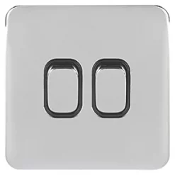 Schneider Electric Lisse Deco 10AX 2-Gang 2-Way Light Switch Polished Chrome with Black Inserts