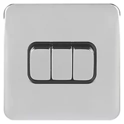 Schneider Electric Lisse Deco 10AX 3-Gang 2-Way Light Switch Polished Chrome with Black Inserts